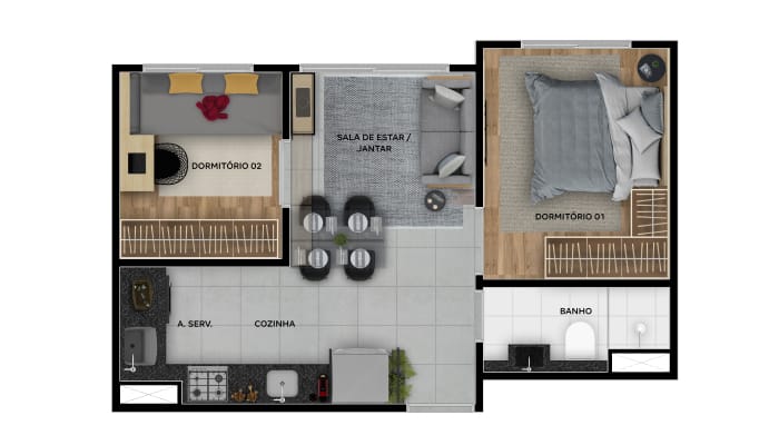 Apartamento de 02 Dorms.